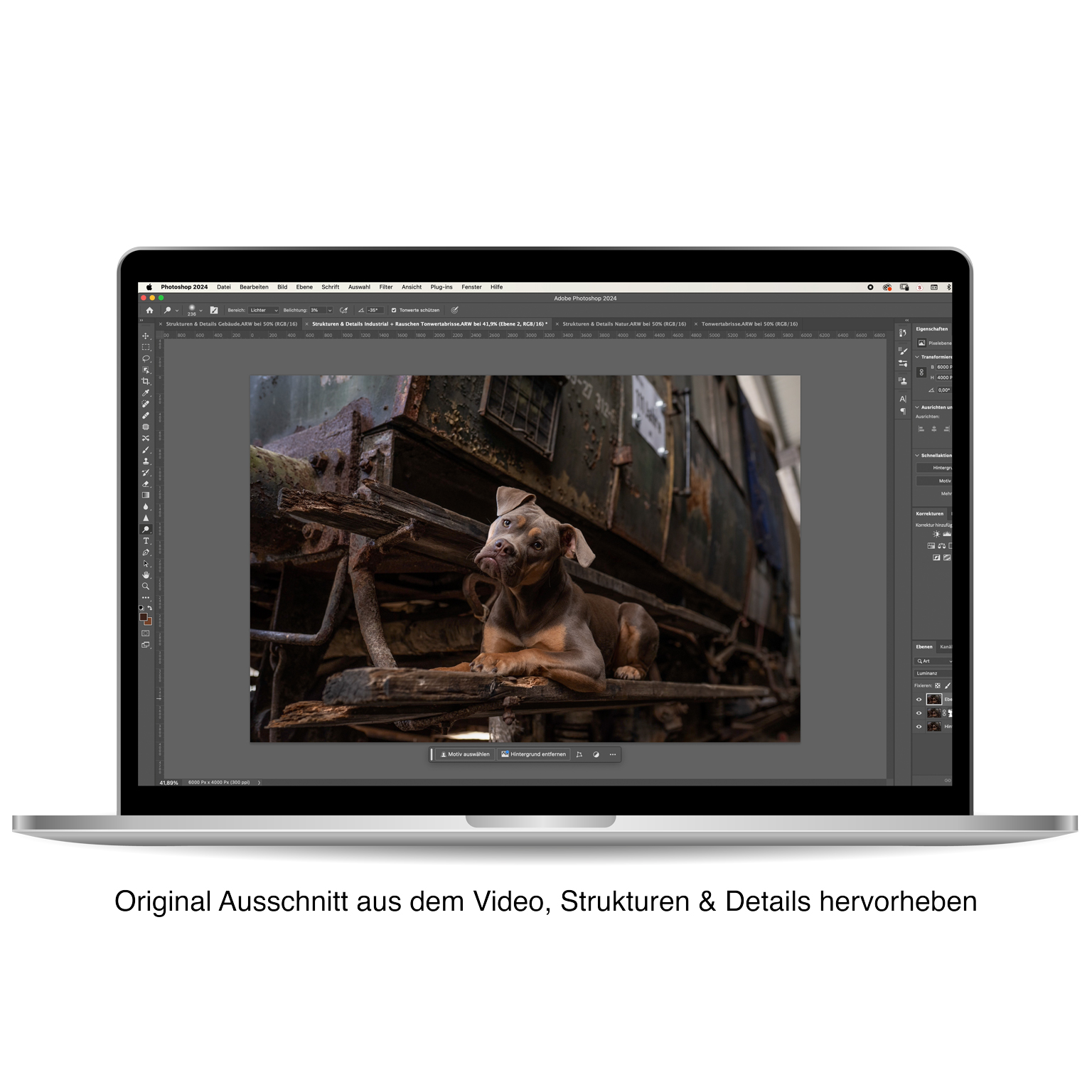 - Details in Industrial Motiven hervorheben und plastischer wirken lassen, anwendbar bei Holzstrukturen, Rost, Metall etc.